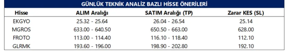 Tacirler Yatırım 2 Şubat 2026 tarihli günlük teknik analiz bazlı hisse önerilerini paylaştı. Listede 4 hisse yer aldı. Detaylar haberin devamında...