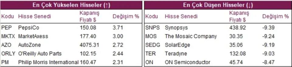 S&P 500 %2,71, Nasdaq %3,56, Dow Jones %1,90 oranında değer kaybetti. Tahvil piyasası hafif değer kaybıyla defansif bir görünüm sunarken, ons altın pozitif fiyatlandı. Büyüme görünümüne yönelik endişelerin artmasıyla DXY %0,55 değer kaybıyla 98,85 seviyesinde haftayı noktaladı.