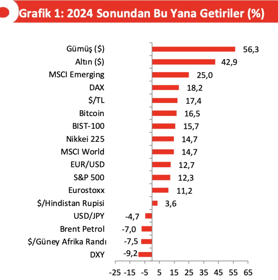 "Bu hafta Fed yetkililerinden gelen temkinli mesajlar ve beklenenden olumlu açıklanan ABD makro verileri faiz indirim beklentilerini törpülerken, tahvil getirileri ve dolar endeksi yükselişe geçti, borsalarda ise genele yayılan satış baskısı oluştu.