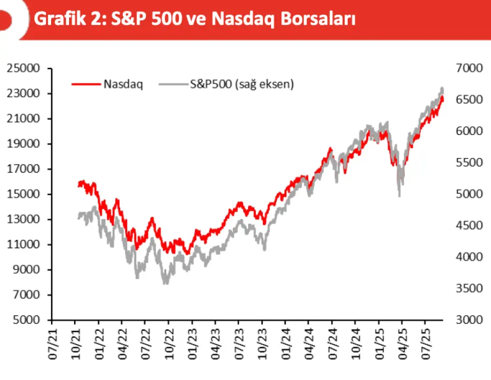 Karşılıklı tarifeler öncesinde öne çekilen ithalat talebi ilk çeyrekte manşet büyümeyi sınırlamıştı. İkinci çeyrekte ise ithalat talebinin normalleşmesi ile bu sınırlayıcı etki geri alındı. Dolayısıyla, bu dalgalanmanın etkisini nötrlemek ve ana eğilimi doğru değerlendirmek amacıyla ilk iki çeyreği birlikte ele aldığımızda, ABD ekonomisinin ilk yarıda tüketim çekişli, beklentilerin hafif üzerinde ve ılımlı oranda (%1,6) büyüdüğü anlaşılıyor.