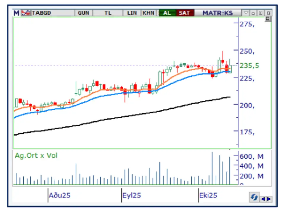 TABGD hissesi için açıklanan hedef fiyat 241,50 TL. Bununla birlikte şirketin 2025 yılının ikinci çeyreğinde açıkladığı net dönem karı 1.463.171.000 TL Şirket geçen yılın aynı döneminde 1.232.996.000 TL kâr açıklamıştı. 2025 yılının ilk yarısında açıklanan özkaynaklar ise 19.003.488.000 TL.