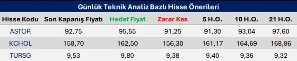 ASTOR, KCHOL ve TURSG Günün Hisseleri!