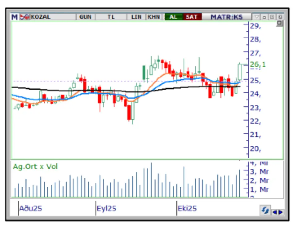 KOZAL hissesi için açıklanan hedef fiyat 27,00 TL. Bununla birlikte şirketin 2025 yılının ikinci çeyreğinde açıkladığı net dönem karı 1.676.222.000 TL Şirket geçen yılın aynı döneminde -320.874.000 TL kâr açıklamıştı. 2025 yılının ilk yarısında açıklanan özkaynaklar ise 36.167.768.000 TL.