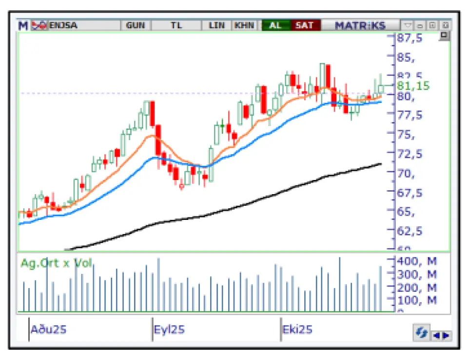 ENJSA hissesi için açıklanan hedef fiyat 83,80 TL. Bununla birlikte şirketin 2025 yılının ikinci çeyreğinde açıkladığı net dönem karı -273.266.000 TL Şirket geçen yılın aynı döneminde -4.015.443.000 TL kâr açıklamıştı. 2025 yılının ilk yarısında açıklanan özkaynaklar ise 83.095.324.000 TL.