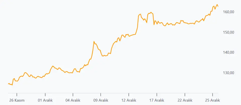 SAHOL hissesi için açıklanan hedef fiyat 88,00 TL. Bununla birlikte şirketin 2025 yılının üçüncü çeyreğinde açıkladığı net dönem karı -788.743.000 TL Şirket geçen yılın aynı döneminde -14.833.585.000 TL kâr açıklamıştı. 2025 yılının üçüncü çeyreğinde ise özkaynaklar 340.973.240.000 TL olarak açıklandı.AKCNS 1 aylık değişim grafiği