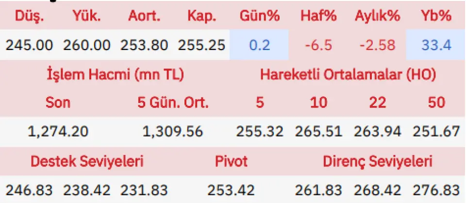 Güne satışlarla başlayan Tofaş Oto. Fab. hissesi, gün içinde en düşük olarak 245 seviyesine gerilerken en yüksek ise 260 seviyesini gördü ve günü açılışına göre yüzde 0.2 yukarıda tamamladı.Hissede yaşanabilecek düşüşler için ilk destek noktamız 246.83 ve 238.42 seviyeleri seviyeleri takip edeceğimiz destek noktaları olacak, yükselişlerde de ilk olarak 261.83 daha sonrasında ise 268.42 seviyelerinde kâr satışlarının olabileceğini düşünüyoruz."