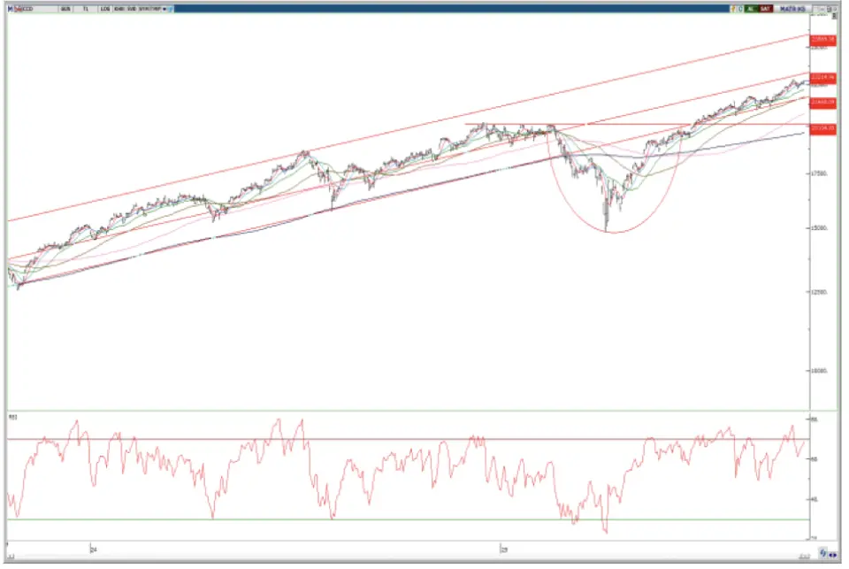 S&P 500 endeksi günü 6711,20 seviyesinde kapanarak günü %0,34 artışla tamamladı. Endeks, kısa vadede 6712 seviyesiyle üst kanal direncine oldukça yaklaşmış durumda ve bu seviye kısa vadede teknik bir direnç bölgesi olarak izlenmeli.