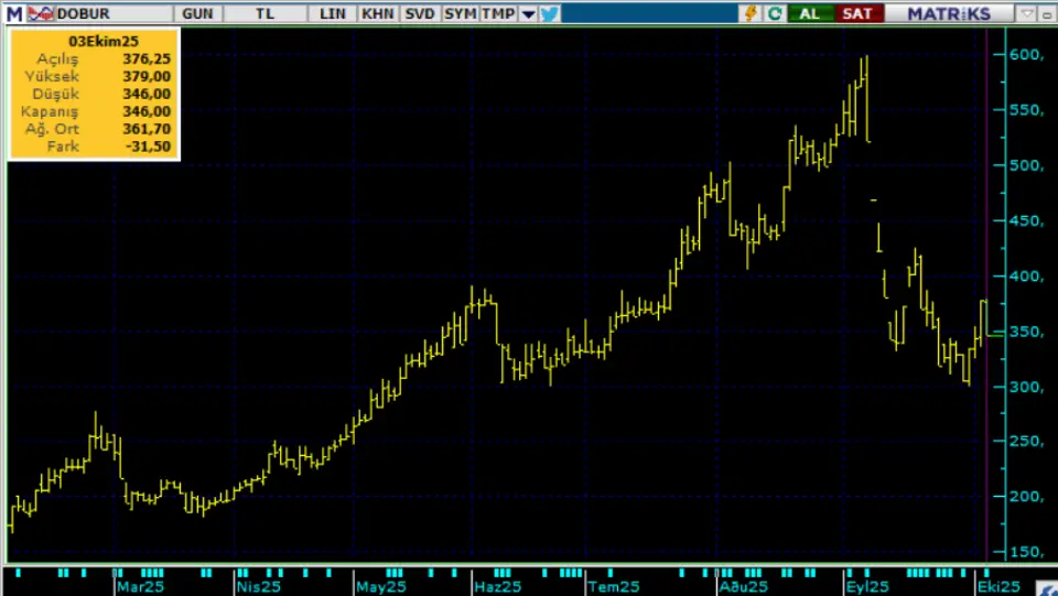 Sermaye Piyasası Kurulu kararı uyarınca devreye alınan Volatilite Bazlı Tedbir Sistemi (VBTS) kapsamında DOBUR.E paylarında 06/10/2025 tarihli işlemlerden (seans başından) 05/11/2025 tarihli işlemlere (seans sonuna) kadar brüt takas uygulanacaktır. İlgili payda halihazırda uygulanmakta olan ve VBTS kapsamında önceki aşamalarda tanımlanan tedbirler de (açığa satış ve kredili işlem yasağı tedbiri) brüt takas tedbirinin uygulandığı süre boyunca devam edecektir.