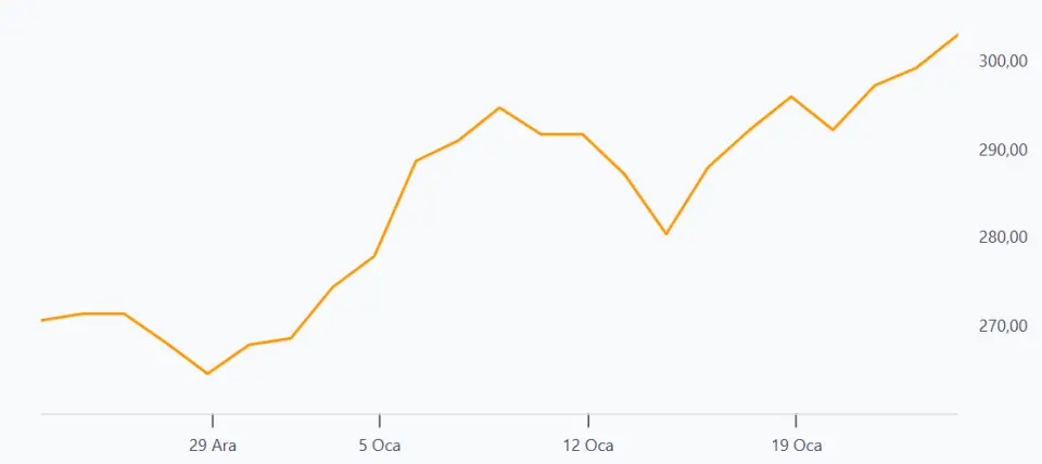 THYAO 1 aylık değişim grafiği