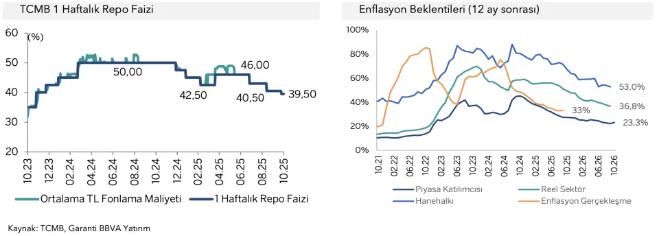 - "Merkez Bankası, 7 Kasım’da yılın son Enflasyon Raporu’nu yayınlayacak. Raporla birlikte TCMB’nin enflasyon tahminleri ve Başkan Karahan’ın para politikasına ilişkin yorumları takip edilecek. Bir sonraki PPK toplantısı ise 11 Aralık’ta yapılacak. Enflasyon üstünde yeni bir risk oluşmaması durumunda TCMB’nin faiz indirimlerine önümüzdeki toplantılarda devam etmesini bekliyoruz."