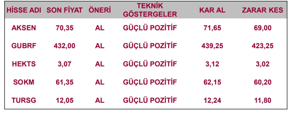İlgili öneri listesinde toplam 5 hisse yer aldı:- AKSEN
