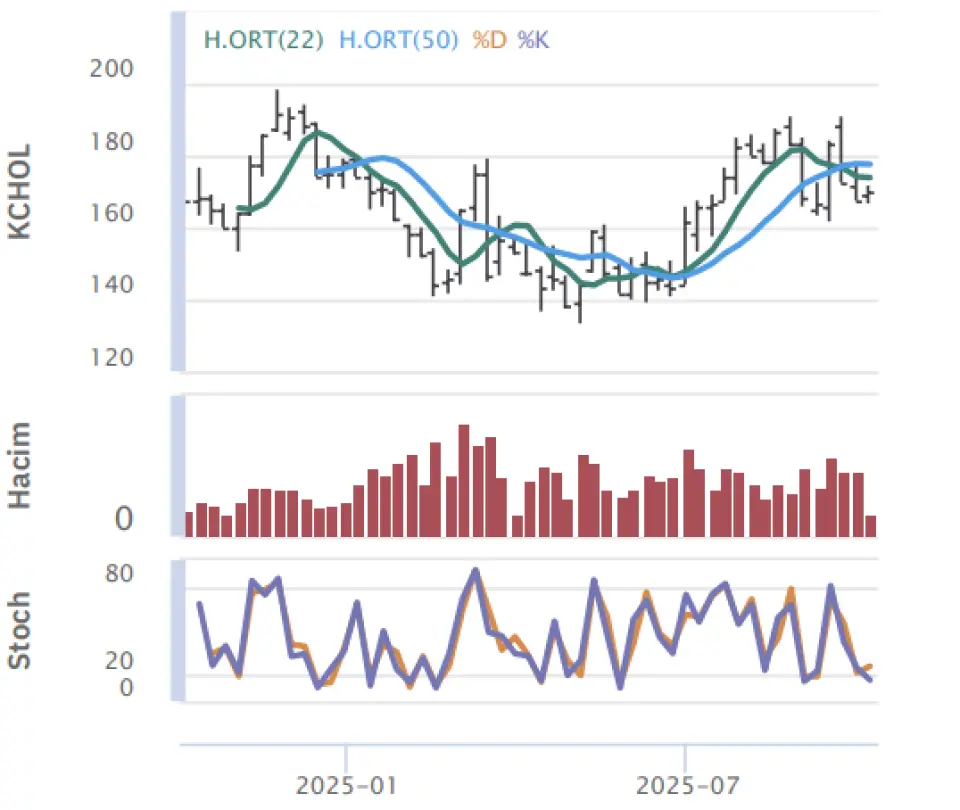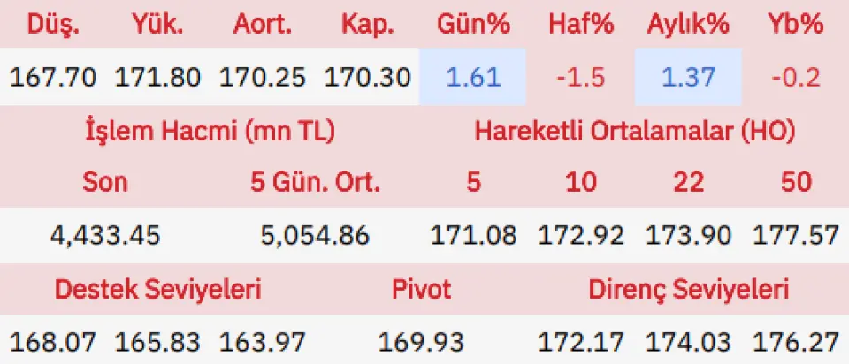 "Günü yükselişle açan Koç Holding gün içinde 167.70 seviyesine gerilerken en yüksek ise 171.80 seviyesini gördü ve günü açılışına göre %1.31 yukarıda önceki güne göre de %1.61 yukarıda tamamladı.Koç Holding hissesinde gün içinde olabilecek düşüşlerde ilk destek noktası 168.07 seviyesini onun altında da 165.83 noktasını bekliyoruz, yukarı yönlü hareketlerde de direnç noktaları olarak 172.17 ve 174.03 seviyelerini takip edeceğiz."