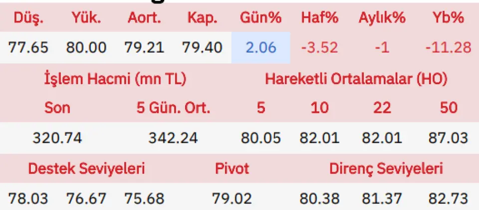 "Günü yükselişle açan Alarko Holding gün içinde 77.65 seviyesine gerilerken en yüksek ise 80.00 seviyesini gördü ve günü açılışına göre %1.79 yukarıda önceki güne göre de %2.06 yukarıda tamamladı.Gün içinde şirket için ilk destek noktamız 78.03 ikinci destek noktası da 76.67 seviyeleri olacak, direnç bölgesi olarak da 80.38 ve 81.37 seviyeleri takibimizde olacak."