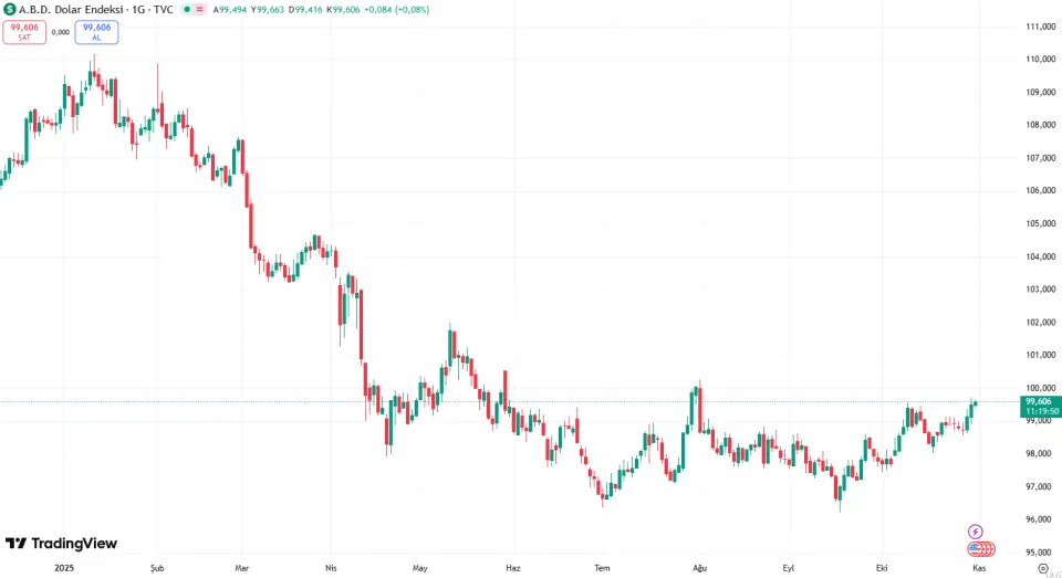 Dolar Endeksi (DXY) kritik destek seviyesi olan 97’den itibaren ılımlı bir yükseliş içerisinde bulunuyor.Güncel olarak 99 seviyesindee Analizde, 101 seviyesinin üstünde dolar talebinin artabileceği vurgulanıyor.
