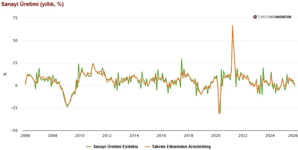 Sanayi Üretimi 2025 Kasım ayında takvim etkisinden arındırılmış olarak yıllık bazda %2,4 artış gösterdi. (Ekim 2025: %+2,2, Kasım 2024: %+1,7)