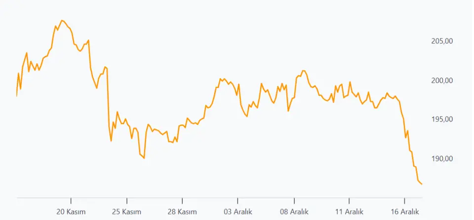 Diğer yandan kısa ve orta vadeli göstergelerde gözlenen belirgin güç kaybı, geri çekilme eğiliminin bir süre daha devam edebileceğini düşündürüyor. Özellikle momentum tarafındaki zayıflama, tepki denemelerinin sınırlı kalma riskini artırıyor. Bugün itibarıyla kırılan 193.70 seviyesinin altındaki hareketlerde pozisyonların kademeli olarak azaltılmasını yararlı buluyoruz.