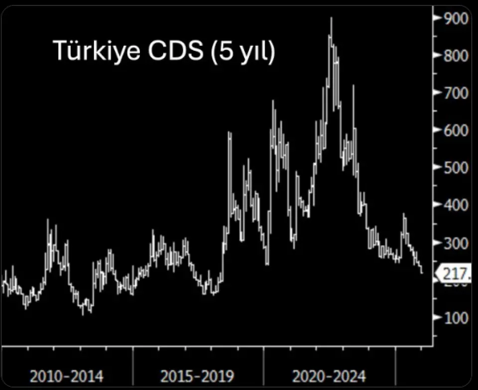 Türkiye’nin küresel finans piyasalarındaki risk algısında son haftalarda dikkat çekici bir iyileşme yaşanıyor. Yaklaşık üç yıl önce 700 baz puan seviyelerinde seyreden Türkiye’nin kredi risk primi (CDS), bugün itibarıyla 230 baz puanın altına kadar gerilemiş durumda.