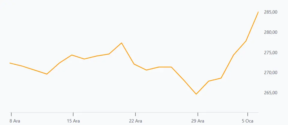 Spot Fiyat: 277,75 (5.Ocak kapanış)