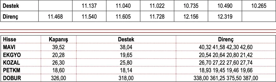 BIST100 endeksi 11.137 ile 11.040 ara destek bandına yöneldi. 11.468 boşluk, 11.540, 11.605 ve 11.728 (283 ABD doları) seviyeleri ise direnç seviyeleri olarak dikkat çekiyor.