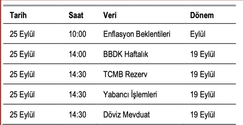 ABD tarafında ise 2Ç25 nihai GSYH verisi takip edilecek. Yarın açıklanacak ABD verileri arasında Ağustos çekirdek PCE ve PCE enflasyonu, kişisel gelir ve harcamalar ile Michigan Üniversitesi’nin nihai tüketici güven endeksi yer alıyor.