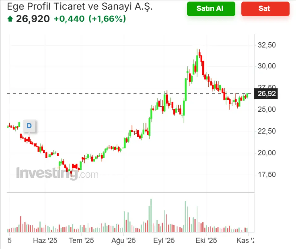 Ege Profil Ticaret ve Sanayi A.Ş. (EGPRO), 2025 yılı 2.çeyrek bilançosunda net karını 361.506.000 TL olarak açıkladı. Net kar 2024 yılının 2. çeyreğinde 601.102.000 TL olarak açıklanmıştı.Akçansa Çimento Sanayi ve Ticaret A.Ş. (AKCNS), 2025 yılı 3.çeyrek bilançosunda net karını 487.432.000 TL olarak açıkladı. Net kar 2024 yılının 3. çeyreğinde 1.654.126.000 TL olarak açıklanmıştı.