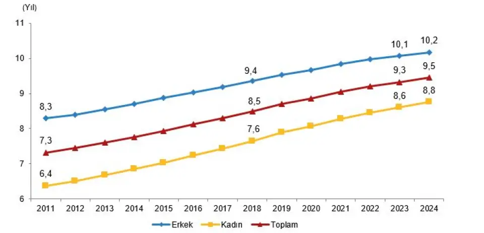 Ortalama eğitim süresi 2024 yılında 9,5 yıl oldu