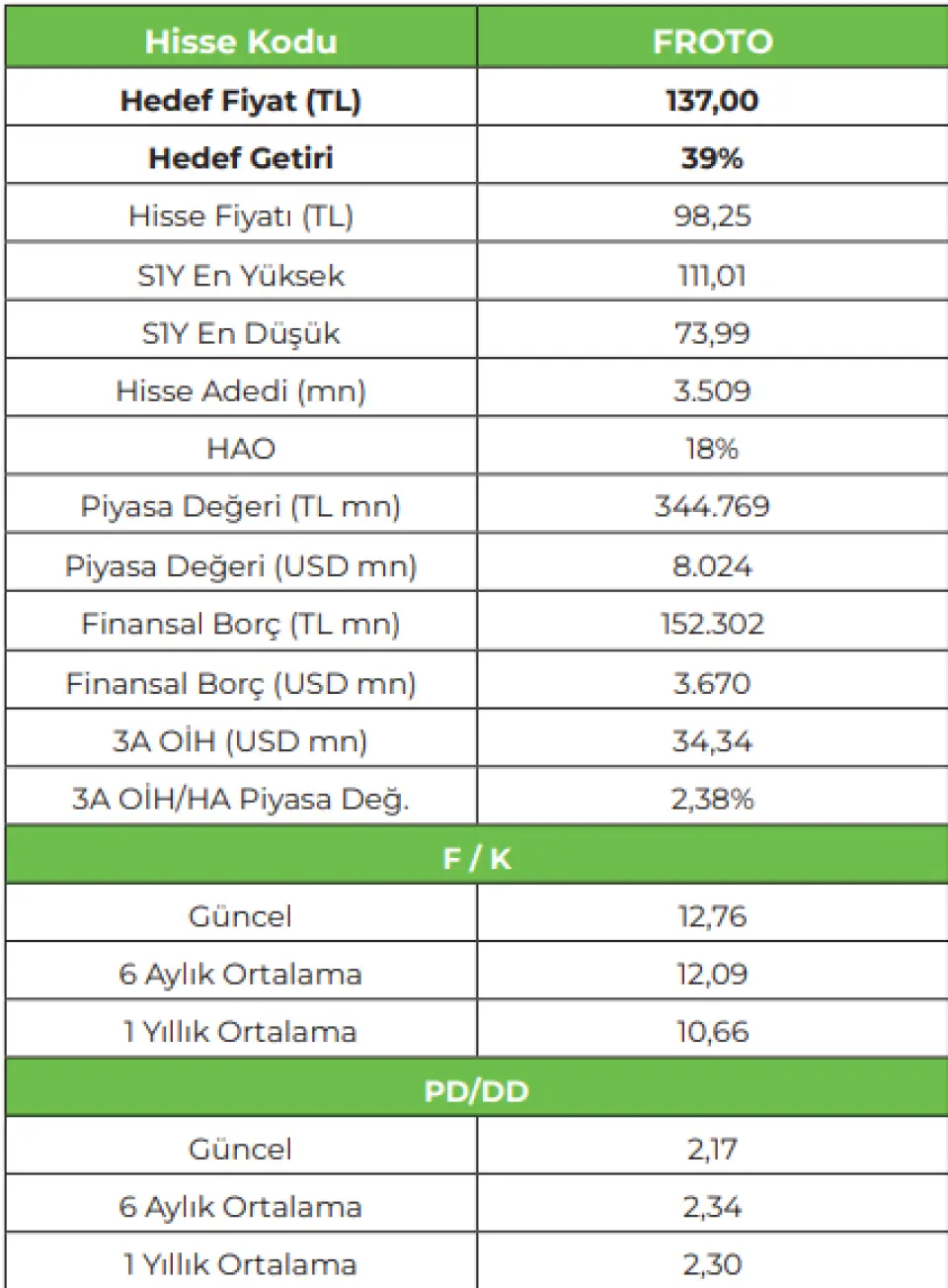 103 TL lik FROTO İçin 137 TL Hedef Fiyat Açıklandı