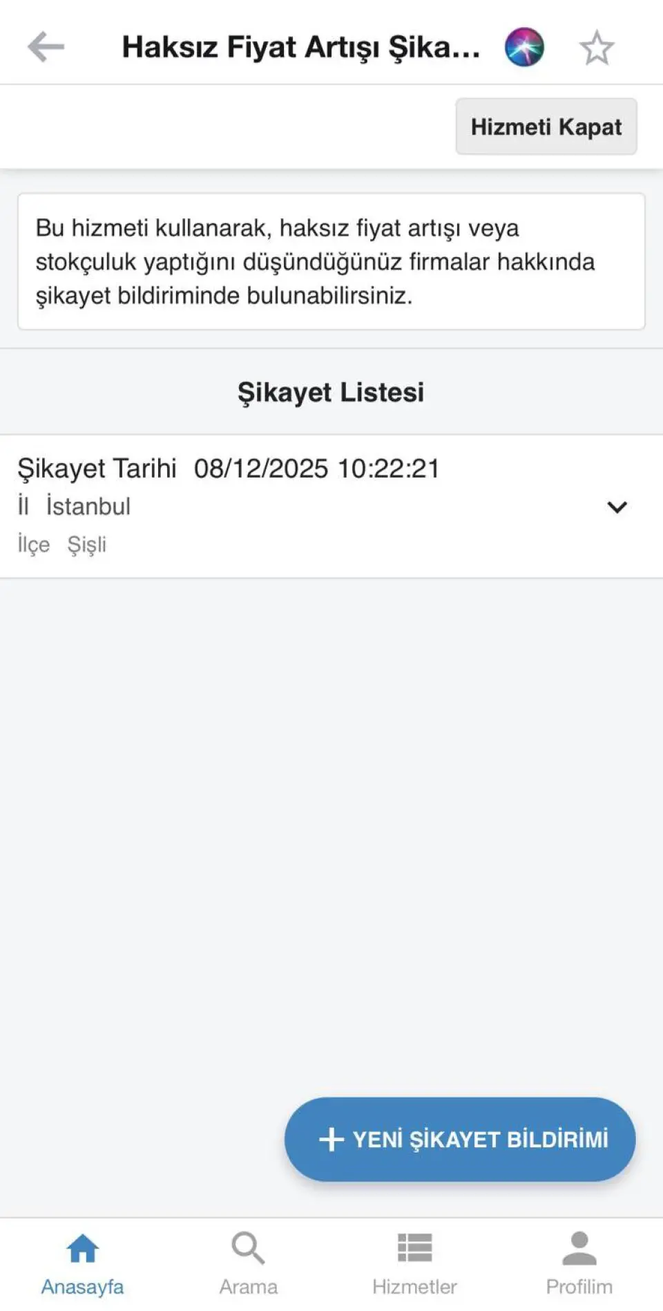 Haksız Fiyat Artışı Şikayet Bildirimi Hakkında