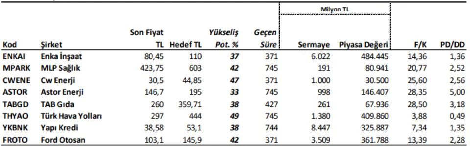 ENKAI, MPARK, CWENE, ASTOR, TABGD, THYAO, YKBNK ve FROTO