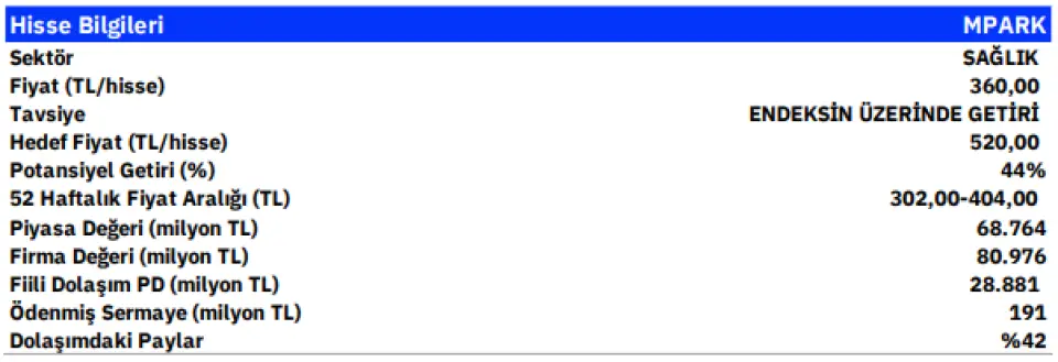 Gedik Yatırım MLP Sağlık MPARK raporu