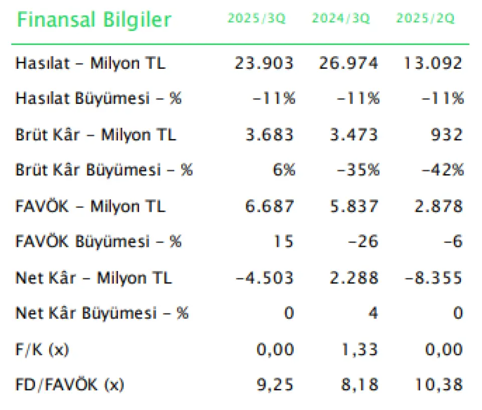 Şirket, 3Ç25’te 4,5 milyar TL net kâr elde etmiştir. Net kârdaki yükselişte, Dorad Energy’deki %25 hissenin satışından sağlanan 7,6 milyar TL’lik tek seferlik yatırım geliri etkili olmuştur.