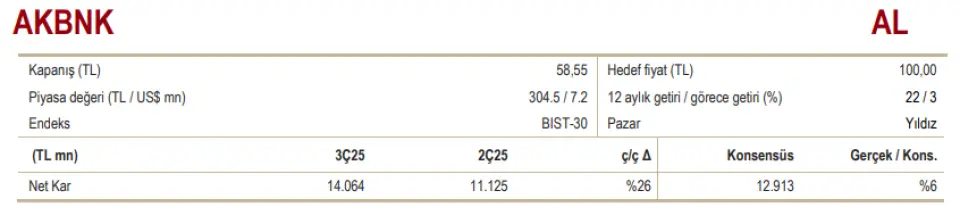ICBC Yatırım Akbank 3Ç25 Bilanço Değerlendirmesi