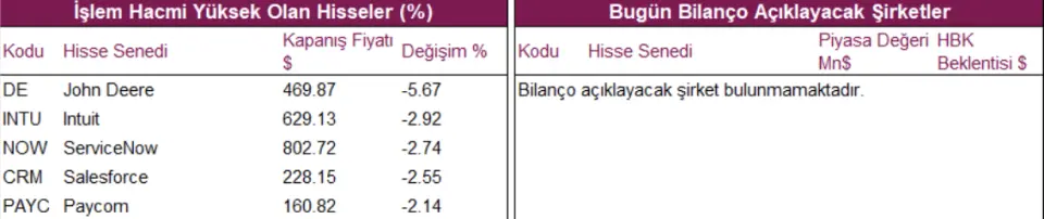 Altyapı %1,32, teknoloji %1,27, ham madde %1,21 primle en iyi performansları gösterirken, sağlık ve telekomünikasyon yatay negatif fiyatlandı. Eylül ayı dayanıklı mal siparişleri beklentilere paralel %0,5 artış gösterdi. Artış büyük ölçüde savunma uçakları siparişlerinin iki ay üst üste artmasından kaynaklandı. Savunma harici artış ise %1,9 beklentinin oldukça altında %0,1 artış kaydetti. Haftalık işsizlik başvuruları ise bir önceki aya ait 222.000 ve beklenti 226.000’in altında 216.000 seviyesinde açıklandı.