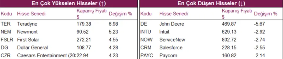 ABD hisse senedi endeksleri şükran günü nedeniyle kısa sürecek işlem haftasında pozitif seyrini koruyor. Aralık ayı FOMC toplantısına dair faiz indirim beklentilerindeki ılımlı seyir, sektörlerin geneline yayılan pozitif bir fiyatlamaya sebebiyet vermekte. Çarşamba günü S&P 500 %0,69, Nasdaq %0,82, Dow Jones %0,67 değer kazanımıyla günü tamamladı. S&P 500 Endeksi’ndeki 11 ana sektörden 9’u pozitif islem gördü.