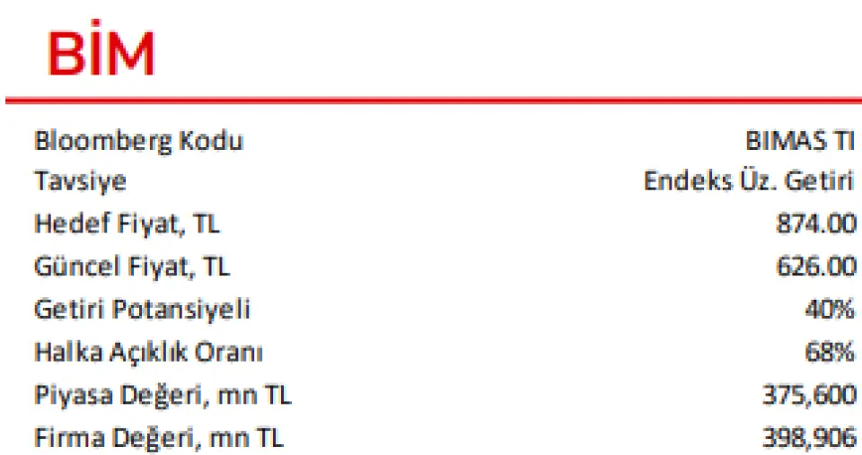 Güncellenen makro varsayımlarımızı yansıtarak Endeks Üzeri Getiri tavsiyemizi koruyor ve 12 aylık hedef fiyatımızı hisse başına 874 TL’ye (önceki: 826 TL) hafif yukarı revize ediyoruz. BİM, uluslararası benzerlerine kıyasla sınırlı bir primle işlem görmektedir.