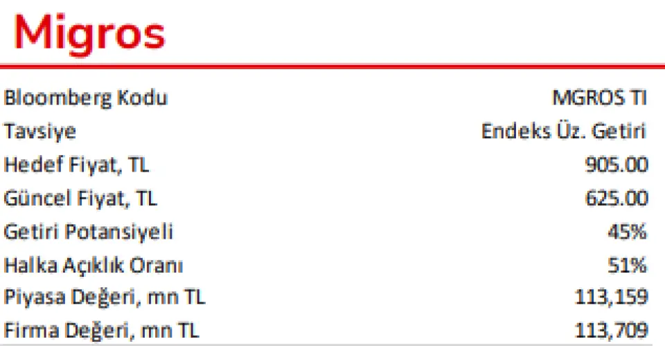 Uzun vadeli makro varsayımlardaki değişiklikleri yansıtarak Endeks Üzeri Getiri tavsiyemizi koruyor ve 12 aylık hedef fiyatımızı hisse başına 905 TL’ye (önceki: 817 TL) yükseltiyoruz. Migros, USD bazlı 2026T F/K çarpanına göre sınırlı bir iskontoyla işlem görmektedir.