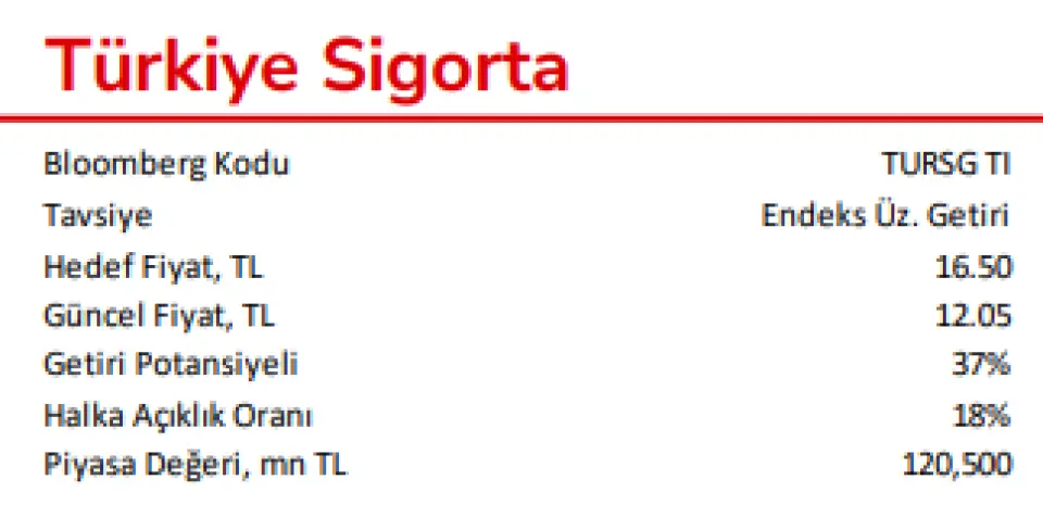 Güçlü sermaye yeterlilik rasyosu: Türkiye Sigorta’nın sermaye yeterlilik rasyosu (SYR), nakit temettü dağıtımı için gerekli olan %135 eşiğinin üzerinde, %191 seviyesinde bulunuyor. Şirketin 4,7 milyar TL nakit temettü (brüt 0,5 TL/hisse) ödemesini bekliyoruz; bu da %25 ödeme oranına ve %3,9 temettü verimine karşılık geliyor.