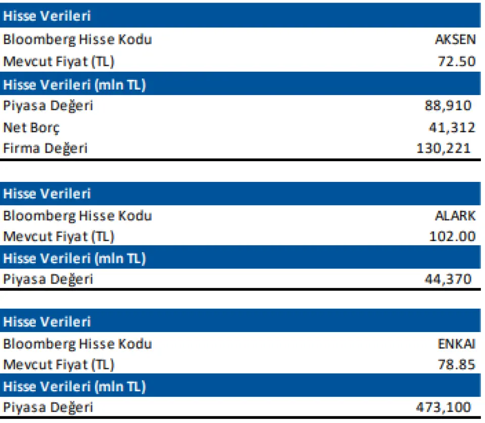 Kurum borsada işlem gören enerji hisseler arasında AKSEN, ALARK ve ENKAI hisselerine AL tavsiyesi verdi.