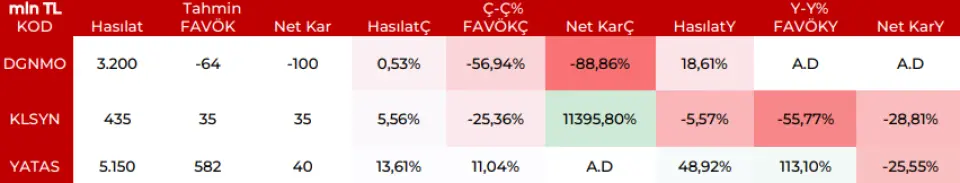 DGNMO: Sektörde karmaşık talep ve maliyet optimizasyonlarına rağmen belirgin problemler doğal olarak FAVÖK ve net tarafta negatif seyri sürdürüyor. Hasılatta görece dengeli seyir var.