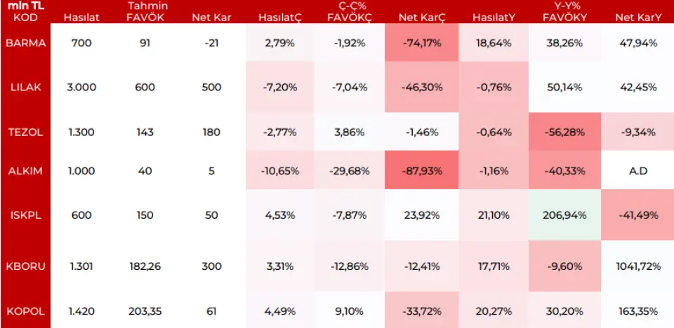 LILAK: Bir TM'nin bu çeyrekte durdurulması nedeniyle stabil seyreden tonaj ve satış varlığı izlemeyi bekliyoruz. FAVÖK marjlarında ise beklentilere paralel şekilde normalizasyonla birlikte net kar tarafında net nakit kullanımı etkin olmaya devam edecek