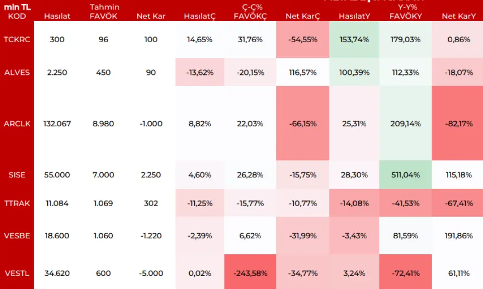 ARCLK: Toparlanma beklentisi içerisinde olsak da yeterli olduğunu düşünmemekteyiz ve zayıf talep, tüketici davranışlarının değişimi ve sektörel negatif etkilerin devamını izlemekteyiz. Giderler tarafında sınırlı bir iyileşme beklentisi içerisinde FAVOK marjında hafif iyileşme beklemekteyiz. Karlılıktaki toparlanmaya paralel olarak da nakit akışında iyileşme beklentisi içerisindeyiz. Genel anlamda zorlu sürecin devamını görsek de operasyonel sürecin görece iyi yönetildiğini düşünmekteyiz.