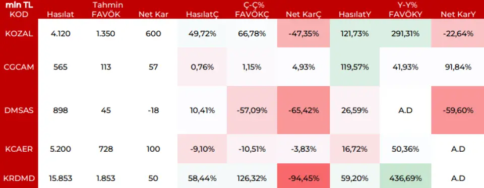 KRDMD: Ürün fiyatlarındaki baskının devamı sonucu satışlarda daralma beklerken yüksek baz etkisinden dolayı FAVÖK'de artış beklemekteyiz.