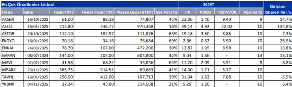 İş Yatırım model portöyün son durumu ve portföydeki hisseler şu şekilde: AKSEN, ASELS, ASTOR, EKGYO, ENKAI, GARAN, MAVI, MPARK, TAVHL ve YKBNK.