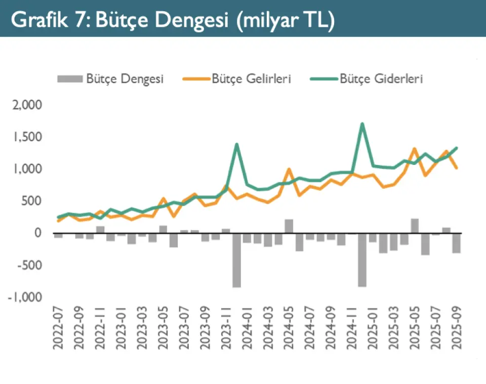 Böylece, 2025 yılının ilk dokuz ayında bütçe açığı yıllık bazda %13,3 artışla 1.217 milyar TL olurken, bir önceki yılın aynı döneminde 161,3 milyar TL açık veren faiz dışı denge 445,1 milyar TL fazla verdi. Eylül ayı itibarıyla 1.931 milyar TL (GSYH’nin %3,1’i) seviyesinde bulunan bütçe açığı hedefinin %63’ü tamamlandı. Yeni OVP ile bütçe açığının 2.208 milyar TL açık vermesi bekleniyor.