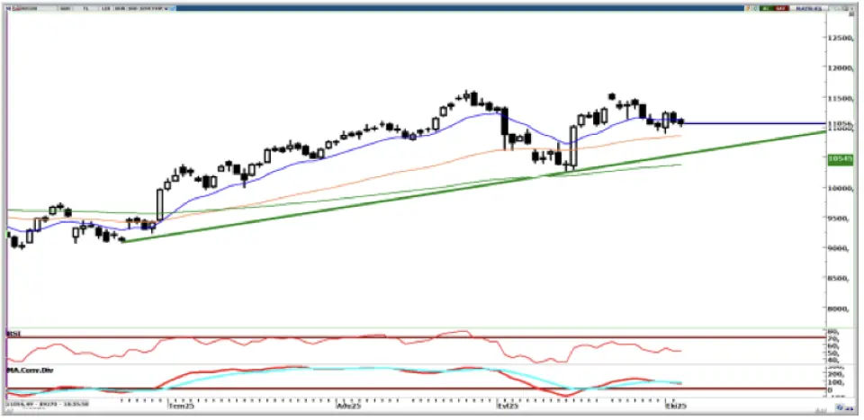 Bist100 endeksi veri sonrası 8 günlük üssel ortalama olan 11.110 seviyesinin doğal olarak aşağısına sarktı.