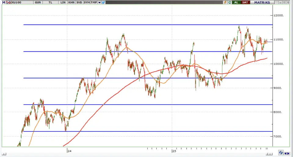 Endekste kısa vadede dalgalı bir seyrin görülmesini bekliyoruz. Çarşamba günü açıklanacak olan enflasyon verisi endeksin yönü açısından kritik olacaktır. Endekste yükselişlerde 11.000 seviyesinin üstünde kalıcılık sağlanırsa 11.150- 11.250 bölgesi endeksin hedef aralığı olarak takip edilecektir. Olası düşüşlerde ise sırasıyla 10.800 ve 10.700 seviyeleri endeksin destek noktaları olarak takip edilmelidir.