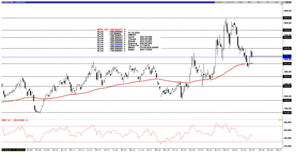 toparlanma çabası sergileyen sektör, Eylül ayında yaşadığı baskıyla beraber tekrardan 520 dolar destek seviyesi yakınında fiyatlamalar sergilemektedir. Bu seviyenin üzerinde fiyatlamanın devam etmesi halinde tekrardan baskı gördüğü 590 dolar direncine yönelik atakları gündeminde tutmaya devam edebilir. Bu seviyenin aşılması halinde 680 dolar seviyesinden bahsedebiliriz. Olası baskılanmanın devam etmesi halinde 520 dolar seviyesi destek olarak takip edilirken altına inilmesi durumunda 120 aylık ortalamanın bulunduğu 465 dolar desteğine doğru geri çekilme riskini artırabilir.