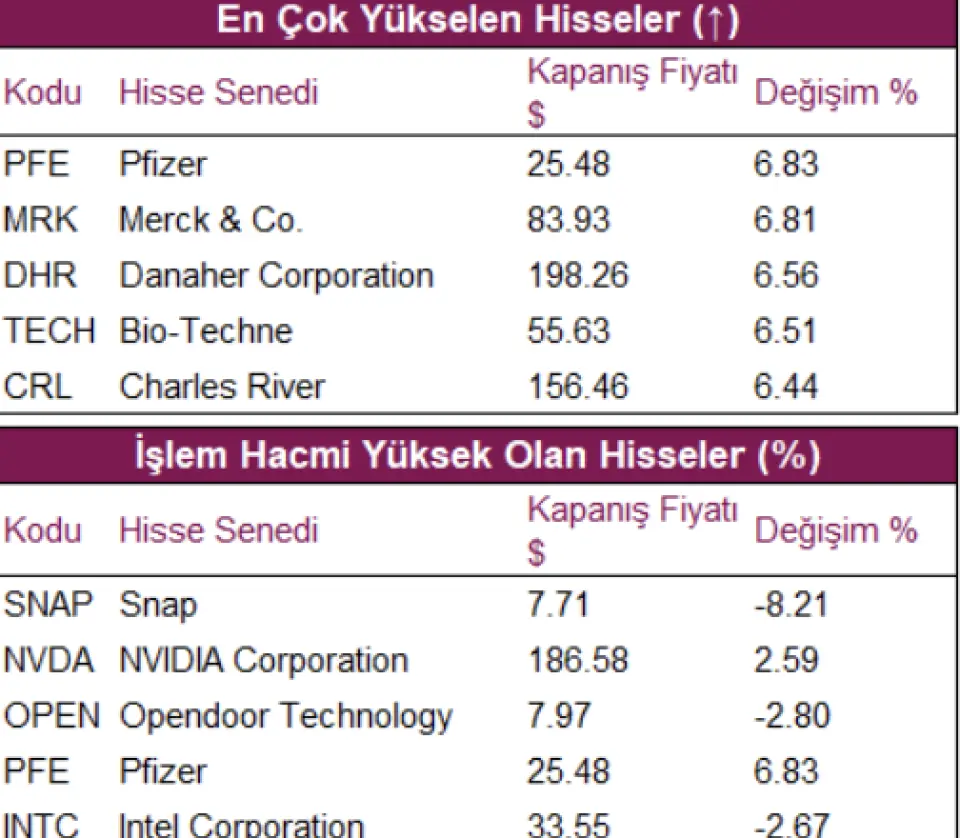 Pfizer (PFE) hisseleri, CEO Albert Bourla ve Başkan Donald Trump’IN Salı günü Beyaz Saray'da düzenlenen bir etkinlikte şirketin ABD'deki bazı ilaçlarının fiyatlarını düşürme planını açıklamasıyla %6,80 değer kazanımıyla fiyatlandı.