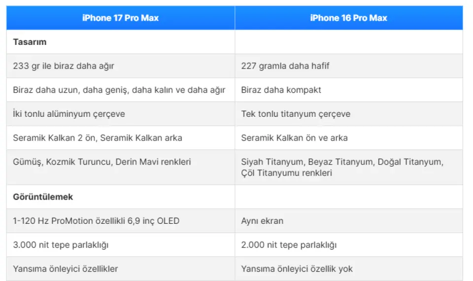iPhone 17 Pro Max vs iPhone 16 Pro Max farkları: