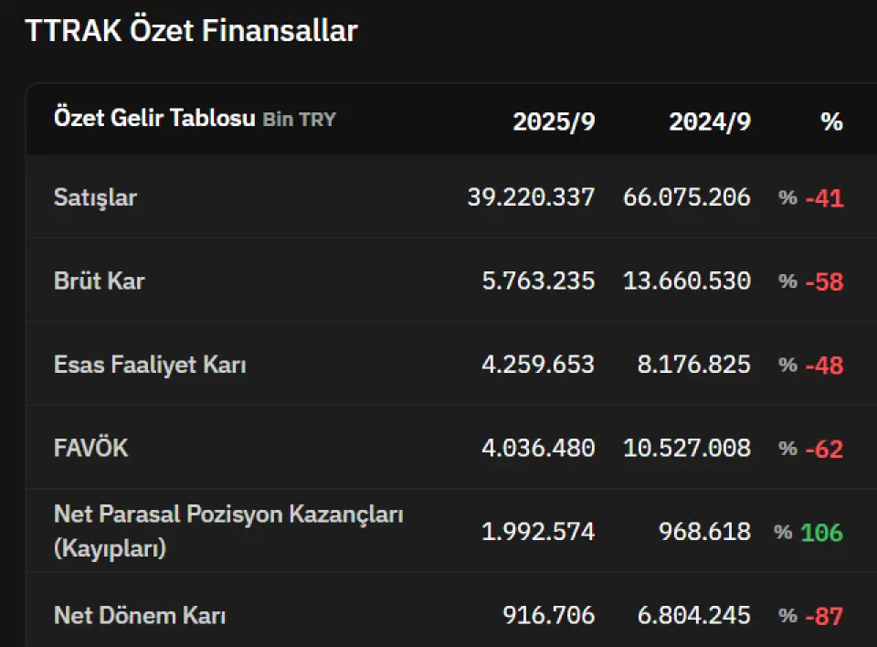 Otomotiv Devinde Karlılık %87 Düştü  916.706.000 TL Kar Rakamı Geldi. Türk Traktör TTRAK bu yıl 3. çeyrekte karlılıkta büyük oranda düşüş yaşadı. Şirketin finansal tablolarını Global Menkul değerlendirdi.